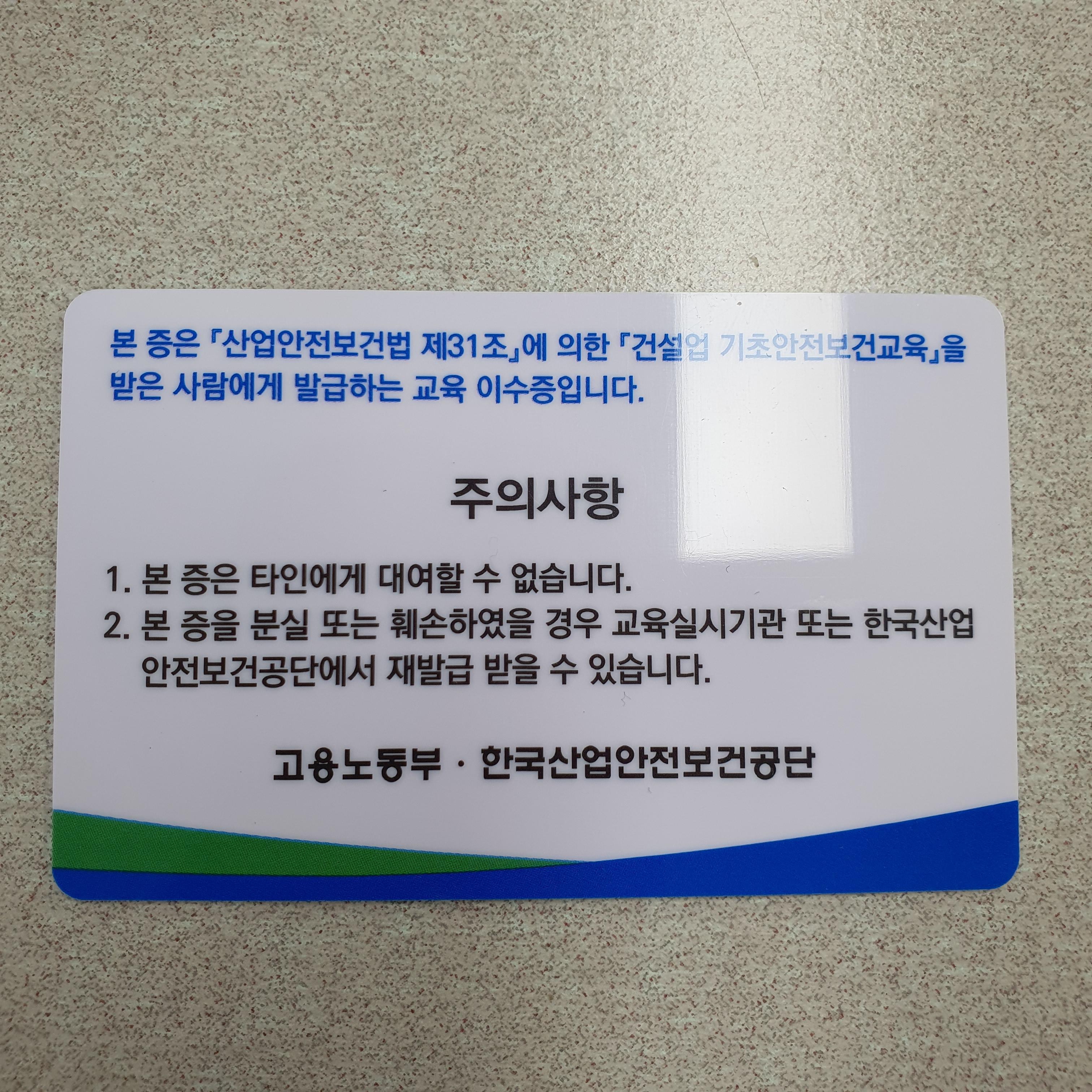 리뷰 2023. 9. 11. 08:00 |건설기초안전보건교육 이수증 따 놓으려고 생각만 한지도 한참 된 것 같은데 이번에 마무리 해버렸습니다.